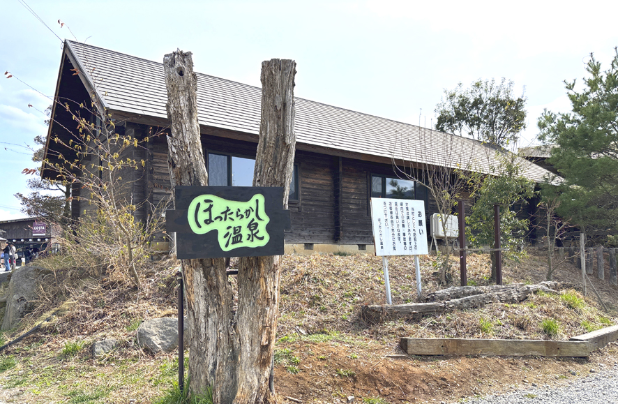 旅番組などでも度々紹介される人気の日帰り温泉施設とあって広〜い駐車場には県外ナンバーの車が目立つ。
