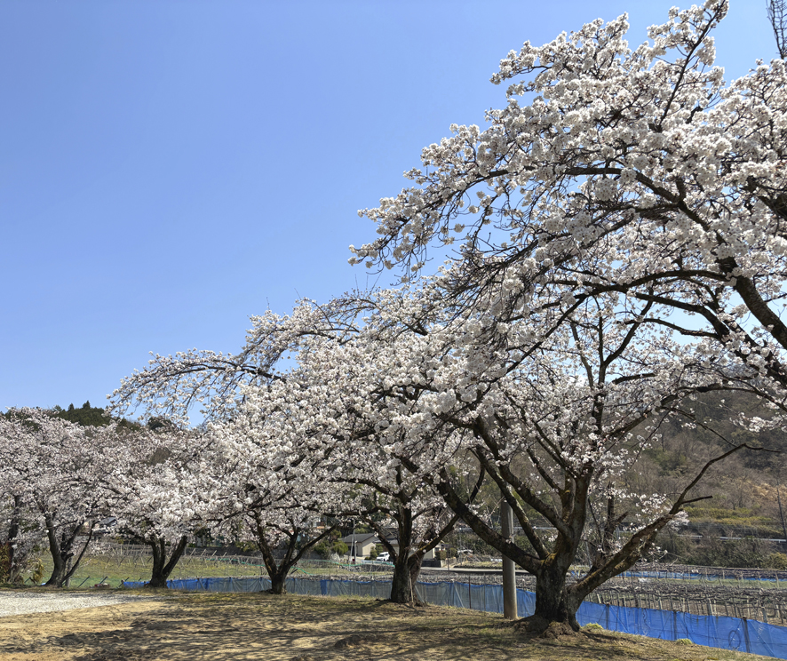 山梨市・甲州市・笛吹市を結ぶ果樹地帯を通る広域農道のことで、桜・すもも・ブドウなどの果樹園が広がる風景を楽しむことができ、季節に応じた果物狩りが楽しめるのだという。